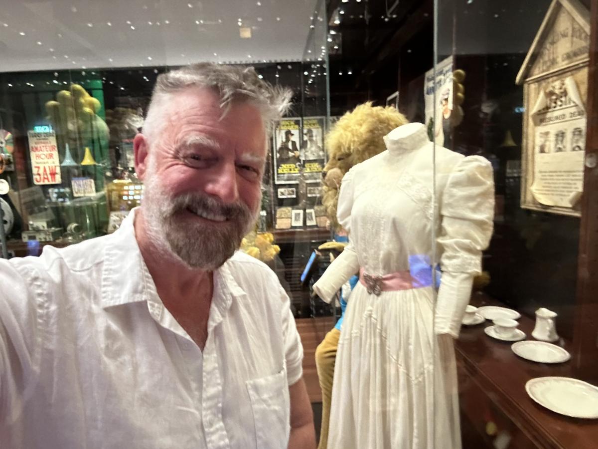 Viewing Miranda's dress from Picnic At Hanging Rock at the National Film and Sound Archive, Canberra